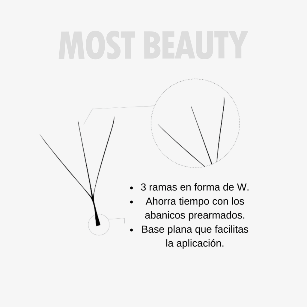 -Contiene una bandeja de extensiones de pestañas de abanicos prefabricados. Forma 3D-W, 0,07 de diametro, rizo D.
