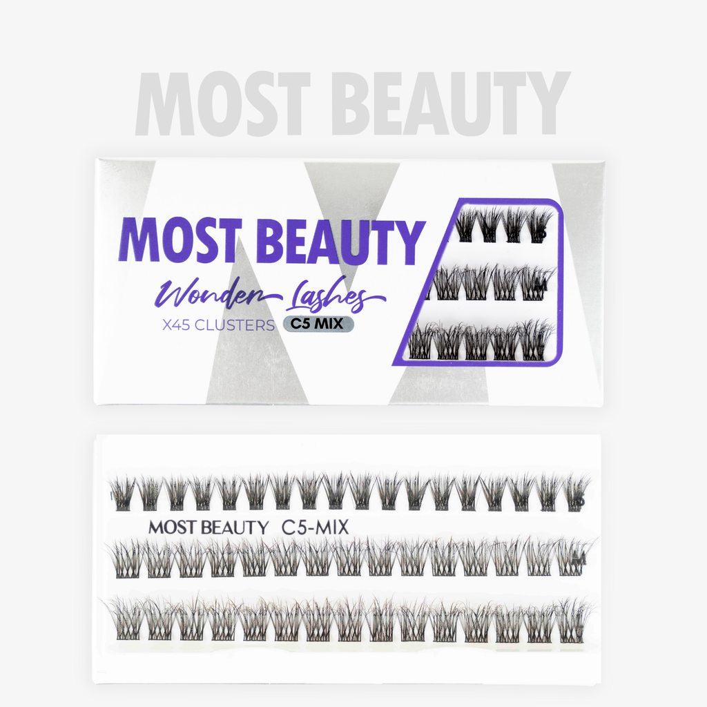 Las pestañas cluster MOST BEAUTY son únicas en el mercado, este estilo es libre de nudo, su banda es plana y el ancho de la primera línea de clusters es mas angosto, ideal para ubicarse cerca del lagrimal y que sean super comodos. ¡Además este MIX cuenta con diferentes longitudes en el mismo paquete! para que puedas armar el estilo de pestañas que mas se ajuste a tu gusto. Son extremadamente livianas y flexibles, lo cual las hace adaptarse perfectamente a cualquier tipo de ojo.