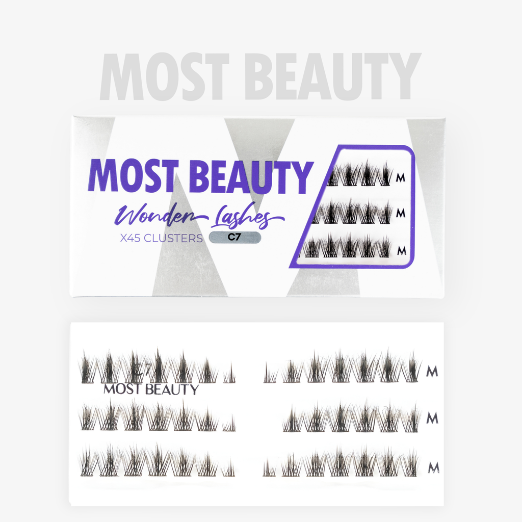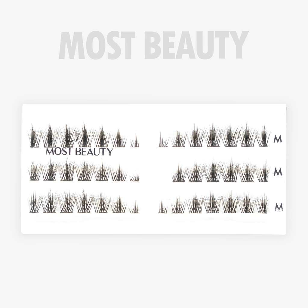 Las pestañas cluster MOST BEAUTY son únicas en el mercado, este estilo es libre de nudo, su banda es plana y el ancho de la primera línea de clusters es mas angosto, ideal para ubicarse cerca del lagrimal y que sean super comodos. Todo el empaque tiene la misma longitud TALLA M y lo unido que varia es el ancho de la primera linea. Son extremadamente livianas y flexibles, lo cual las hace adaptarse perfectamente a cualquier tipo de ojo.