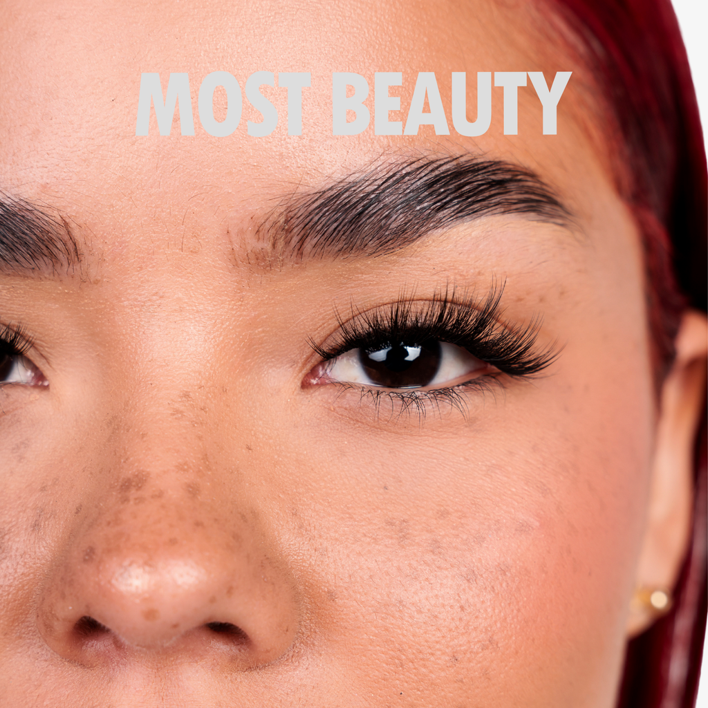 Las pestañas cluster MOST BEAUTY son únicas en el mercado, este estilo es libre de nudo, su banda es plana y el ancho de la primera línea de clusters es más angosto, ideal para ubicarse cerca del lagrimal y que sean súper cómodos. Su banda de aproximadamente 5 mm de ancho, lo cual hace que llenar el párpado sea mucho más rápido que hacerlo con las punto a punto. Son extremadamente livianas y flexibles, lo cual las hace adaptarse perfectamente a cualquier tipo de ojo. Sabemos que las amaras, particularmente la Talla M que es la más usada en maquillajes sociales.