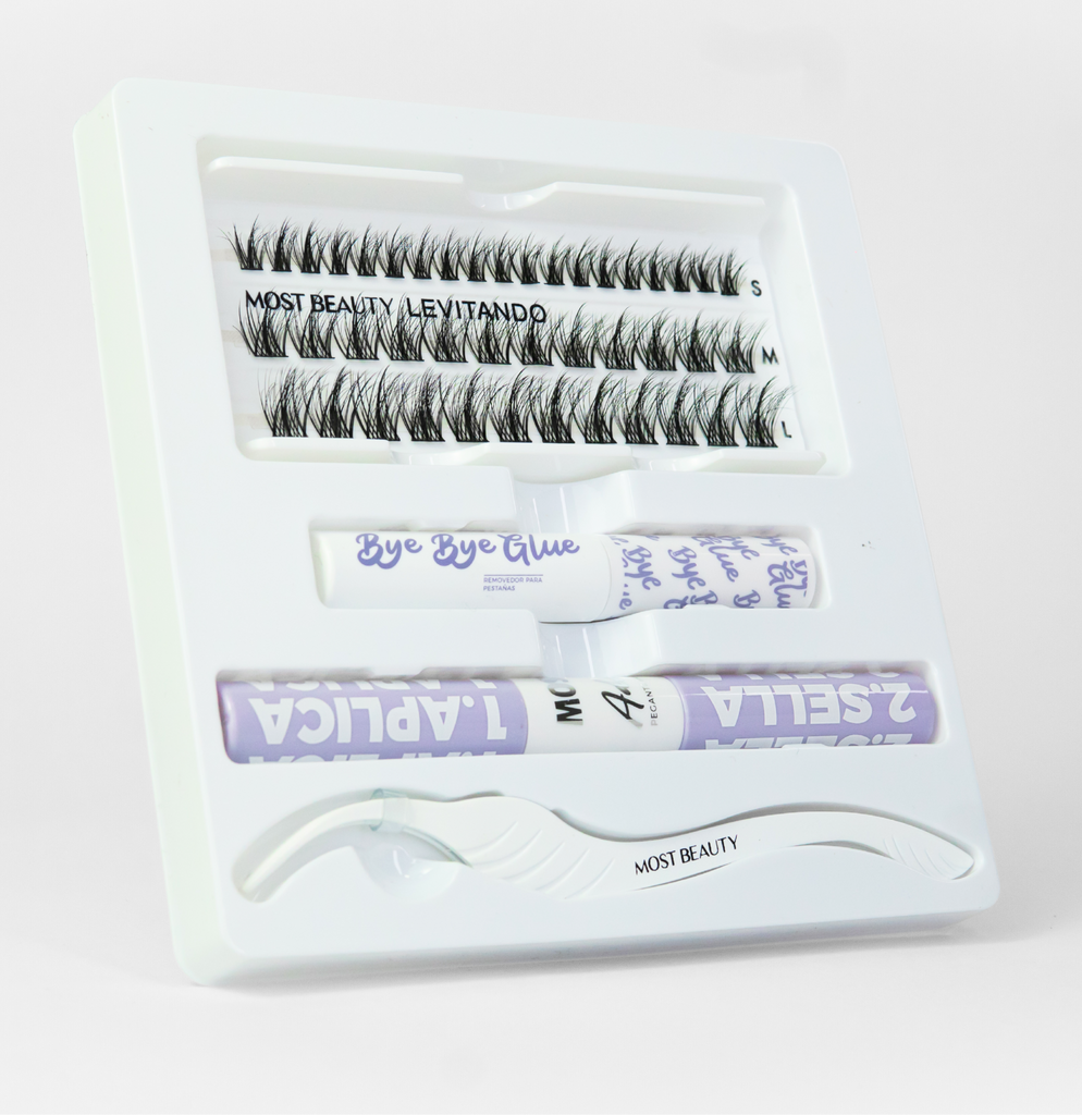 Incluye sus clusters favoritos Levitando, el pegante Admirable, el sellante Most Beauty, el removedor del pegante y la pinza pro.